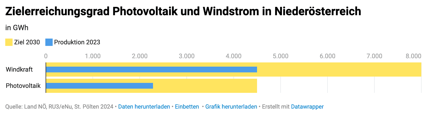 Mit dem Update zum NÖ Klima- und Energiefahrplan wurden die Ziele für die Stromproduktion aus Windkraft und Photovoltaik für das Jahr 2030 erhöht.