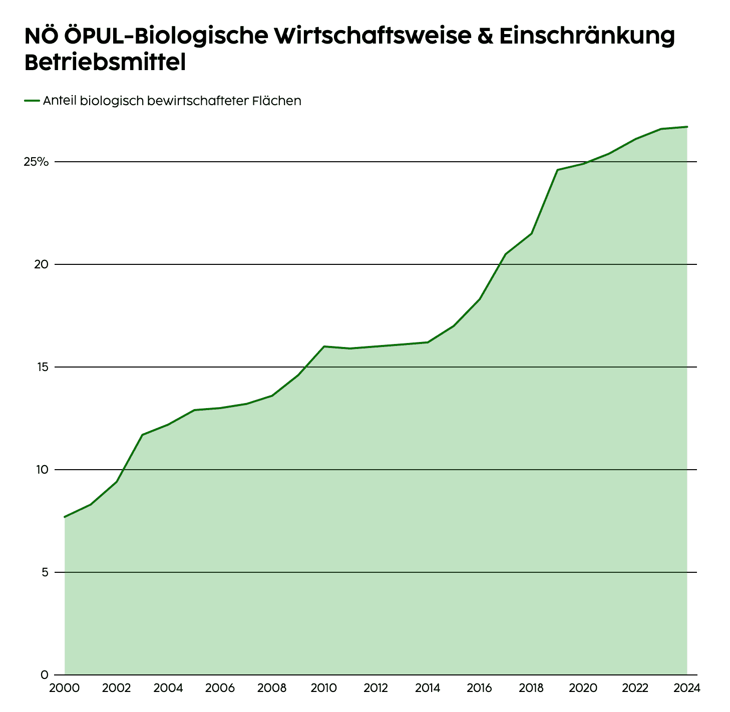 Durch das ÖPUL-Programm konnten die Bioflächen in NÖ weiter rasch wachsen!