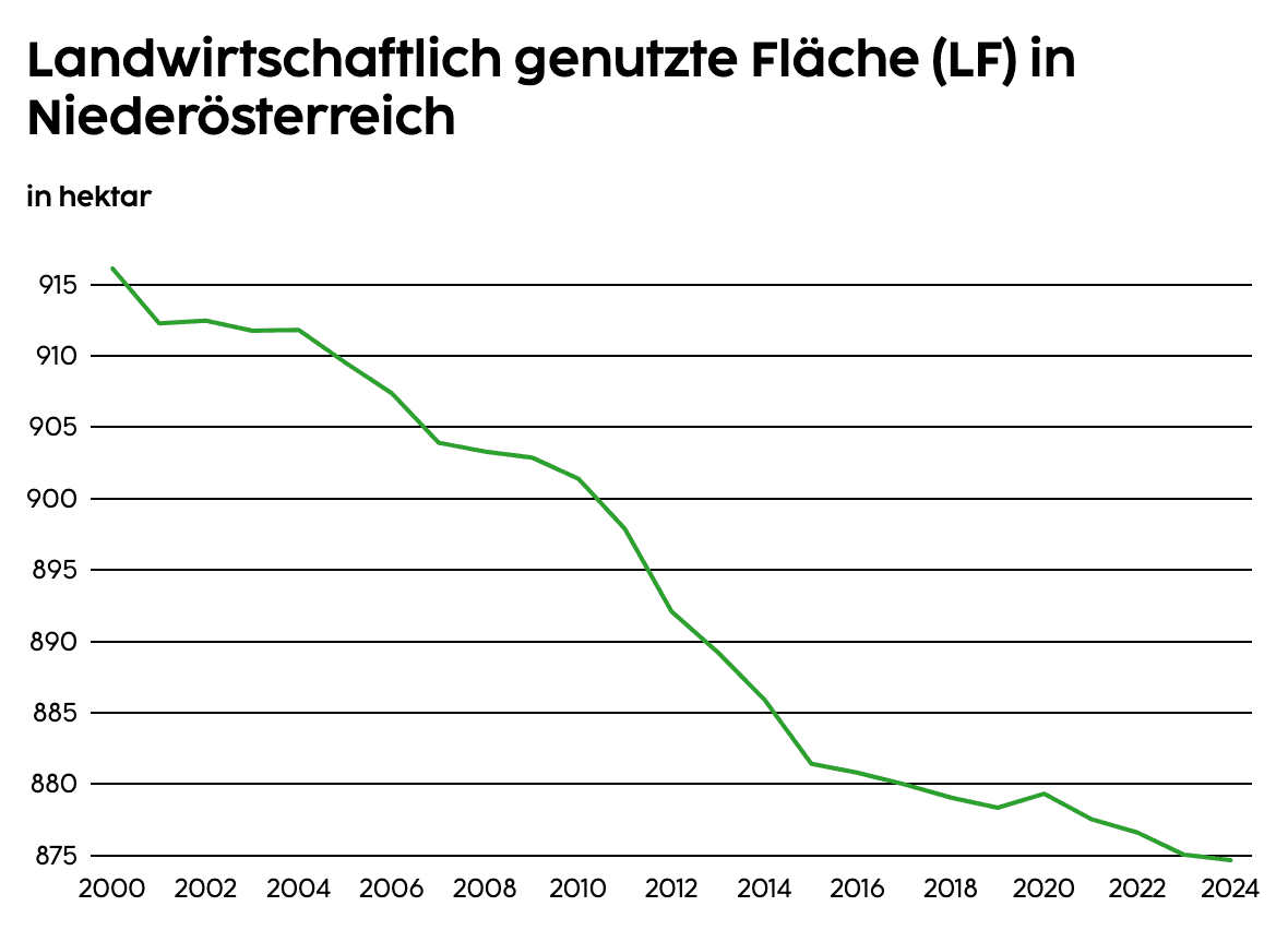 Landwirtschaft, Flächen (ha) in Niederösterreich und nach Bundesländern
