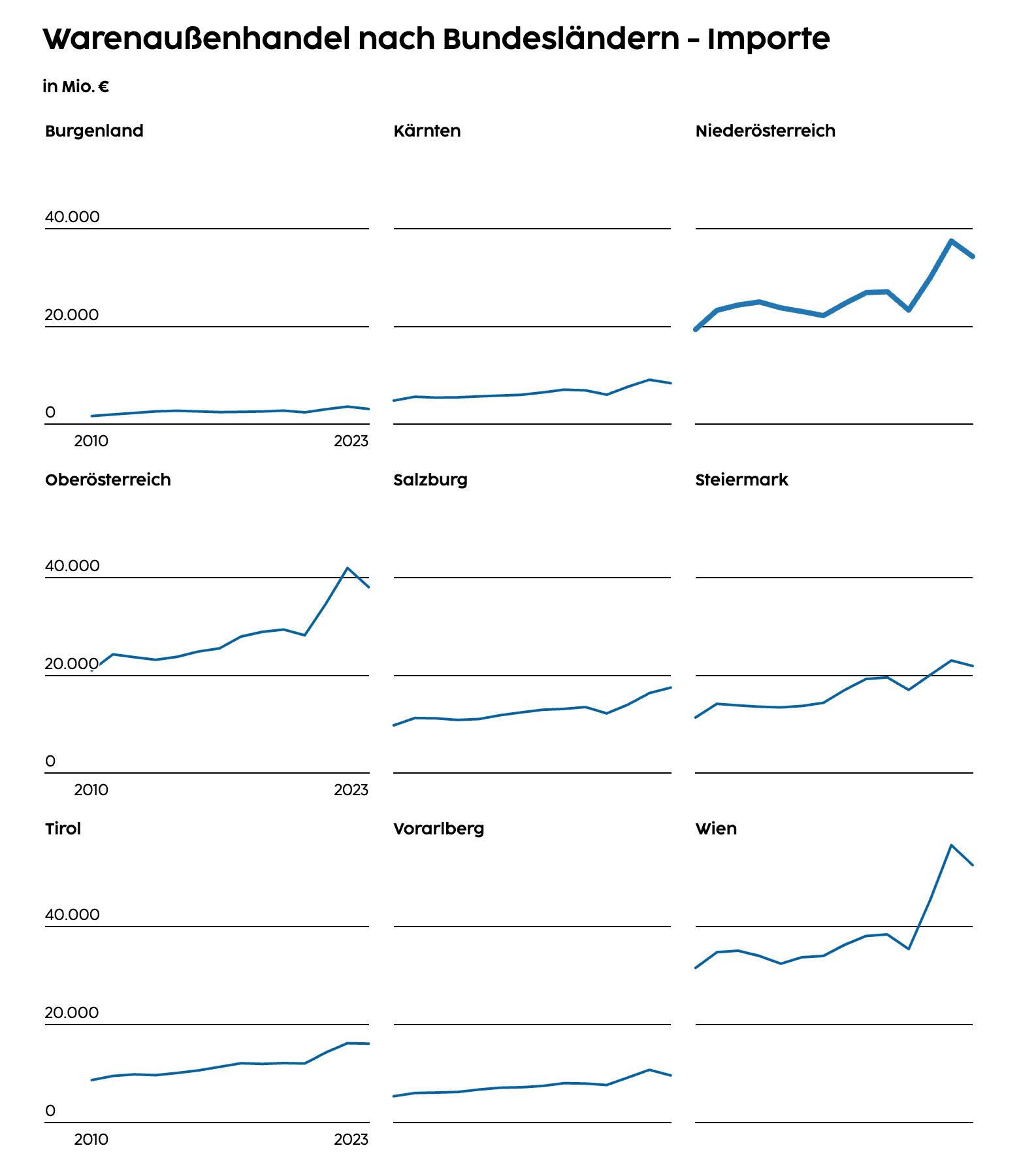 Österreich ist als offene Volkswirtschaft stark vom Außenhandel abhängig. Wichtigste Handelspartner sind Deutschland und die USA. Der Anstieg der Warenausfuhren hat in den letzten Jahren an Dynamik verloren.